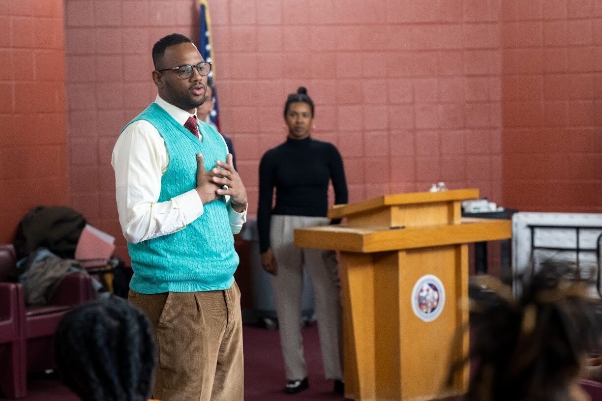 Georgetown alum and Ward 7 Councilmember Wendell Felder speaks to students.